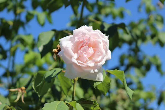 Another award-winning old rose, introduced in 1879, Madame Alfred Carriere has long been known for its fully double, creamy, pastel pink flowers. It is continuously blooming, with flexible stems ideal for training up arches and trellises. Really pest and disease-resistant, it thrives in full sunlight. However, it will do exceptionally well in the shade, owing to its genetics. The blooms, due to their pastel pink tint, look especially romantic and showy in shadier spots. In addition to this, it is renowned for its intense fragrance.